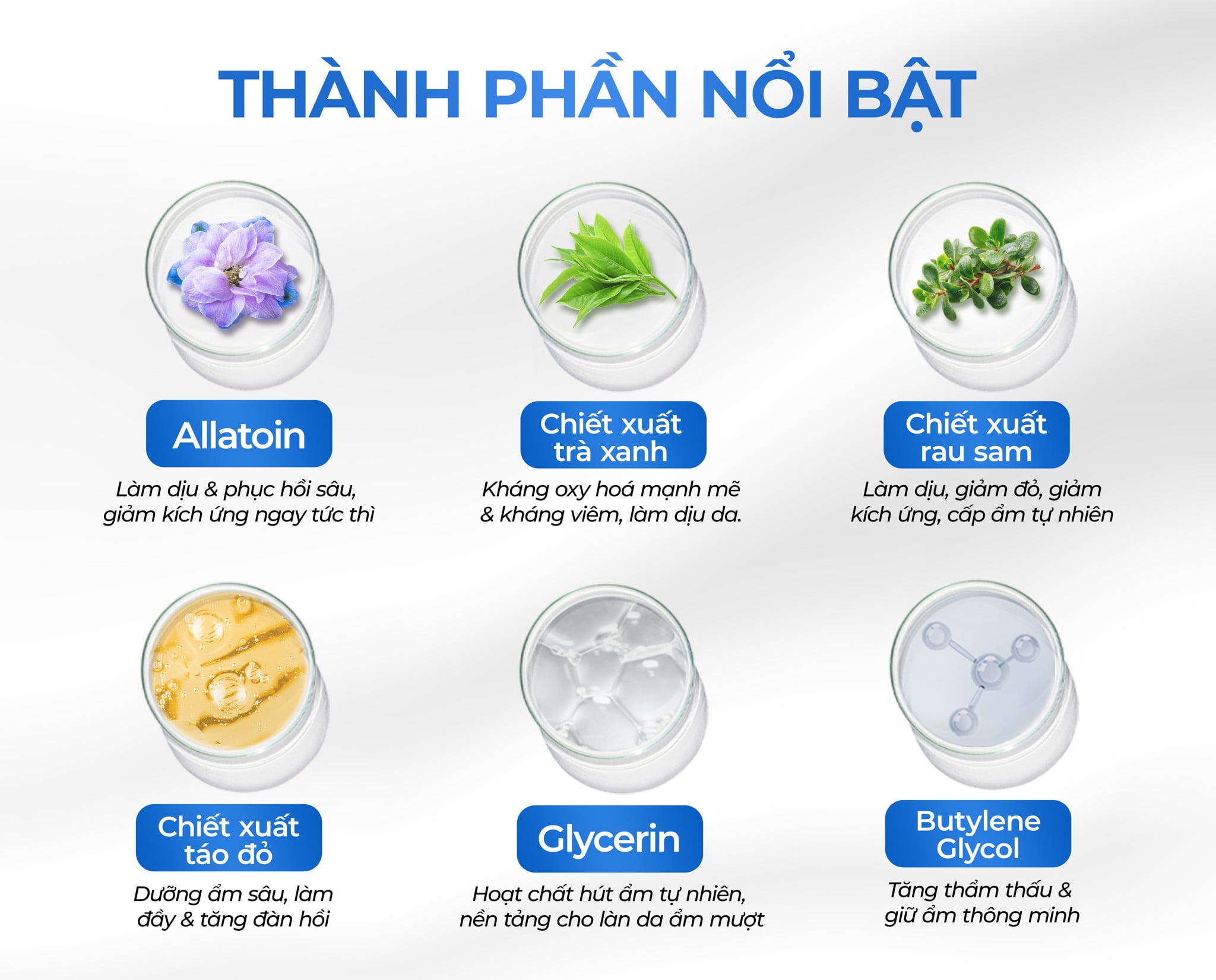 - Allantoin – Làm dịu & phục hồi sâu, giảm kích ứng ngay tức thì